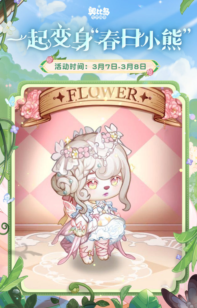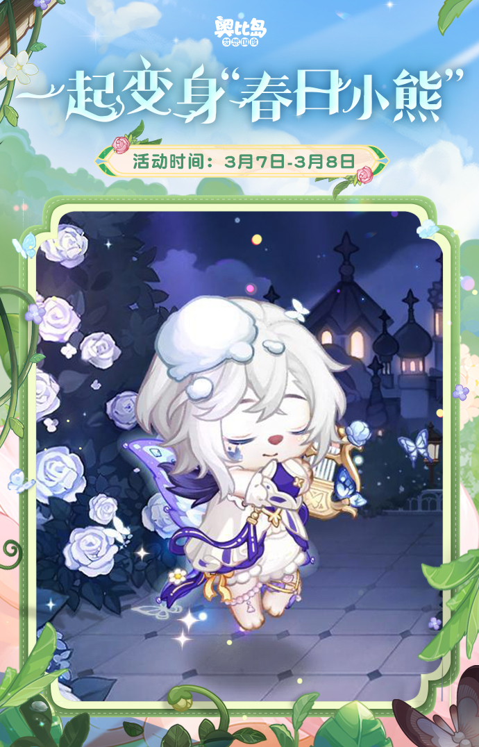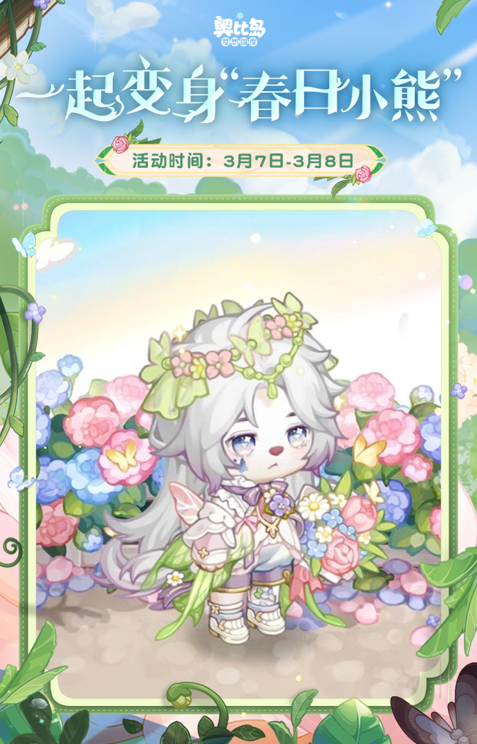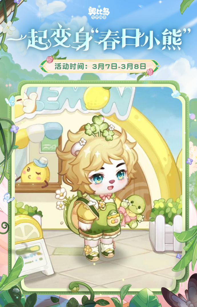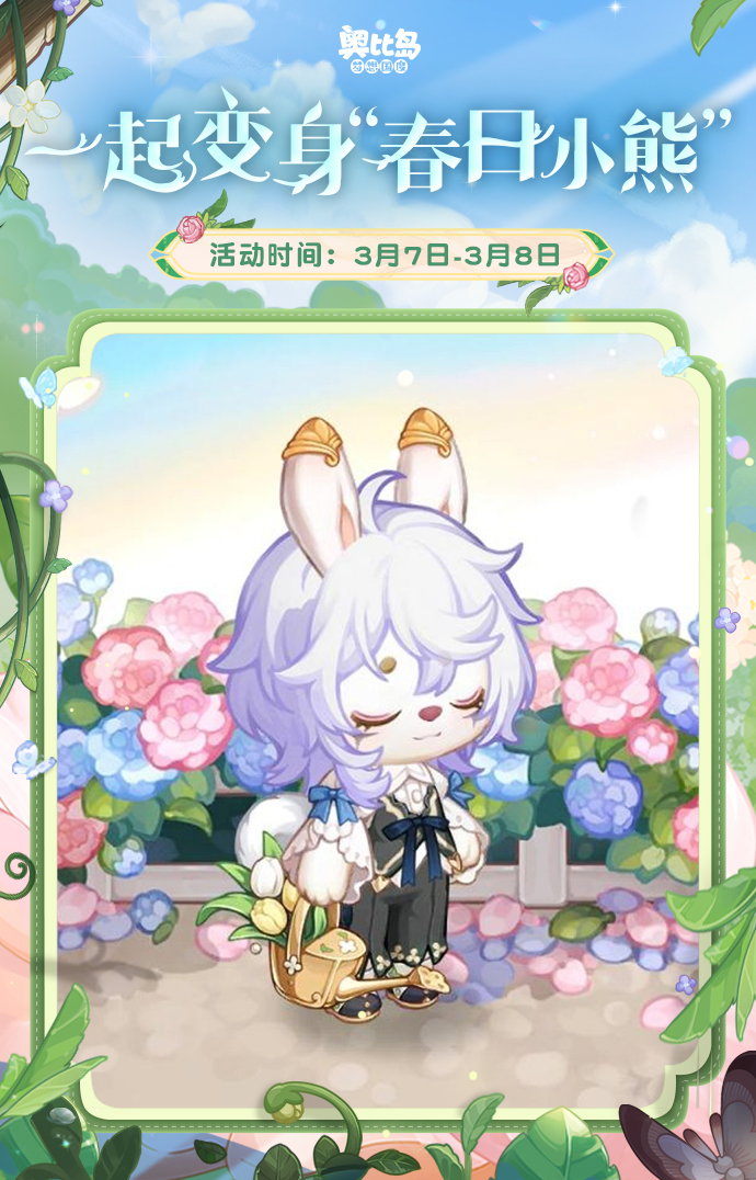 3月7日3月8日23:59,前往#奥比岛手游超话,带#奥比春日小熊#、#奥比岛#话题,发布「春日复苏」版本主题服饰的染色穿搭,即可成功参与。活动结束后还将随机抽10 位小奥比送出【奥比男团流沙票根(随机款)】~