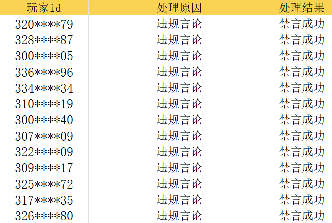 二、针对涉及发布违规及诈骗言论的账号,我们已经进行禁言/封停处理,共计处理1290个账号,部分名单如下: